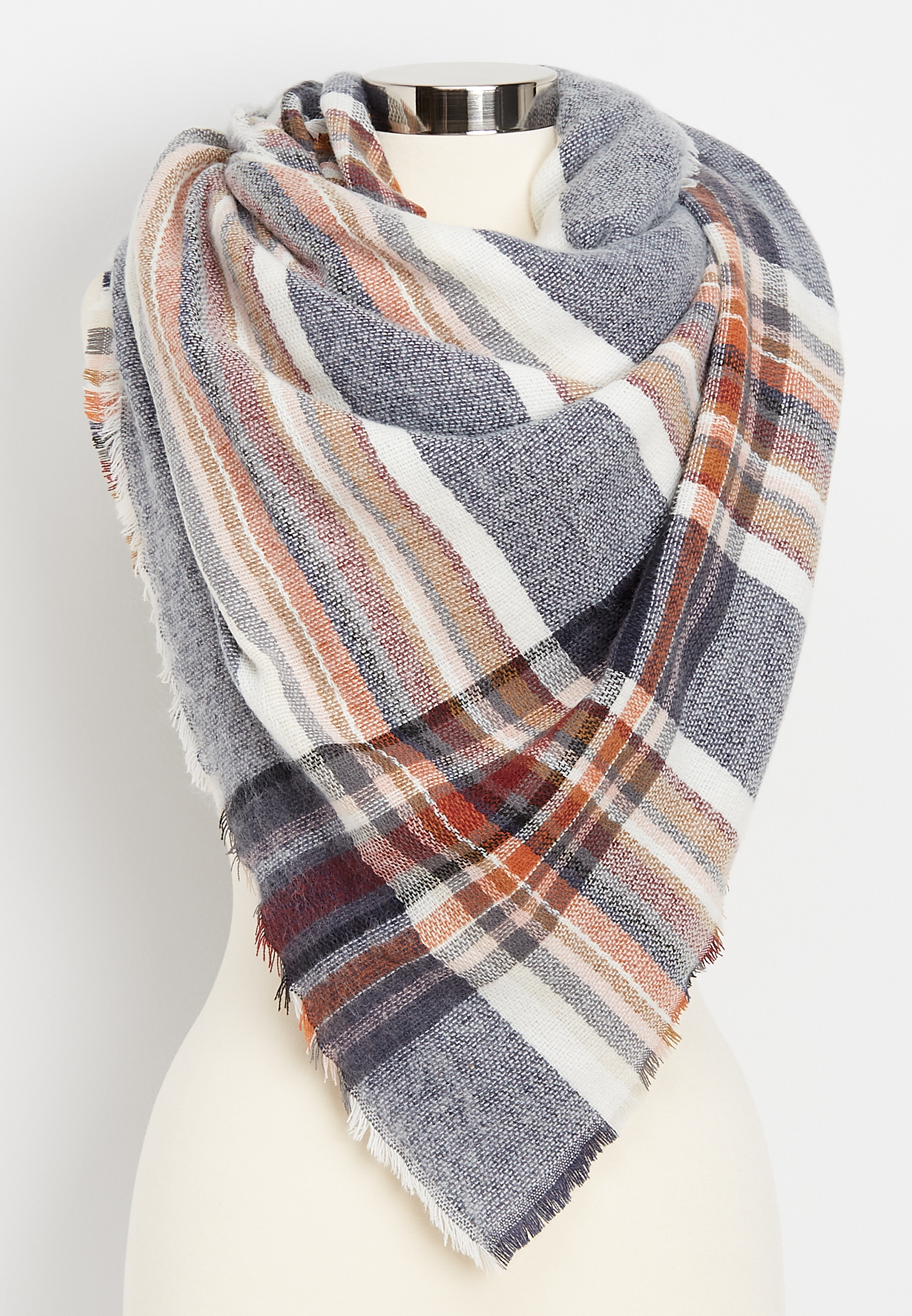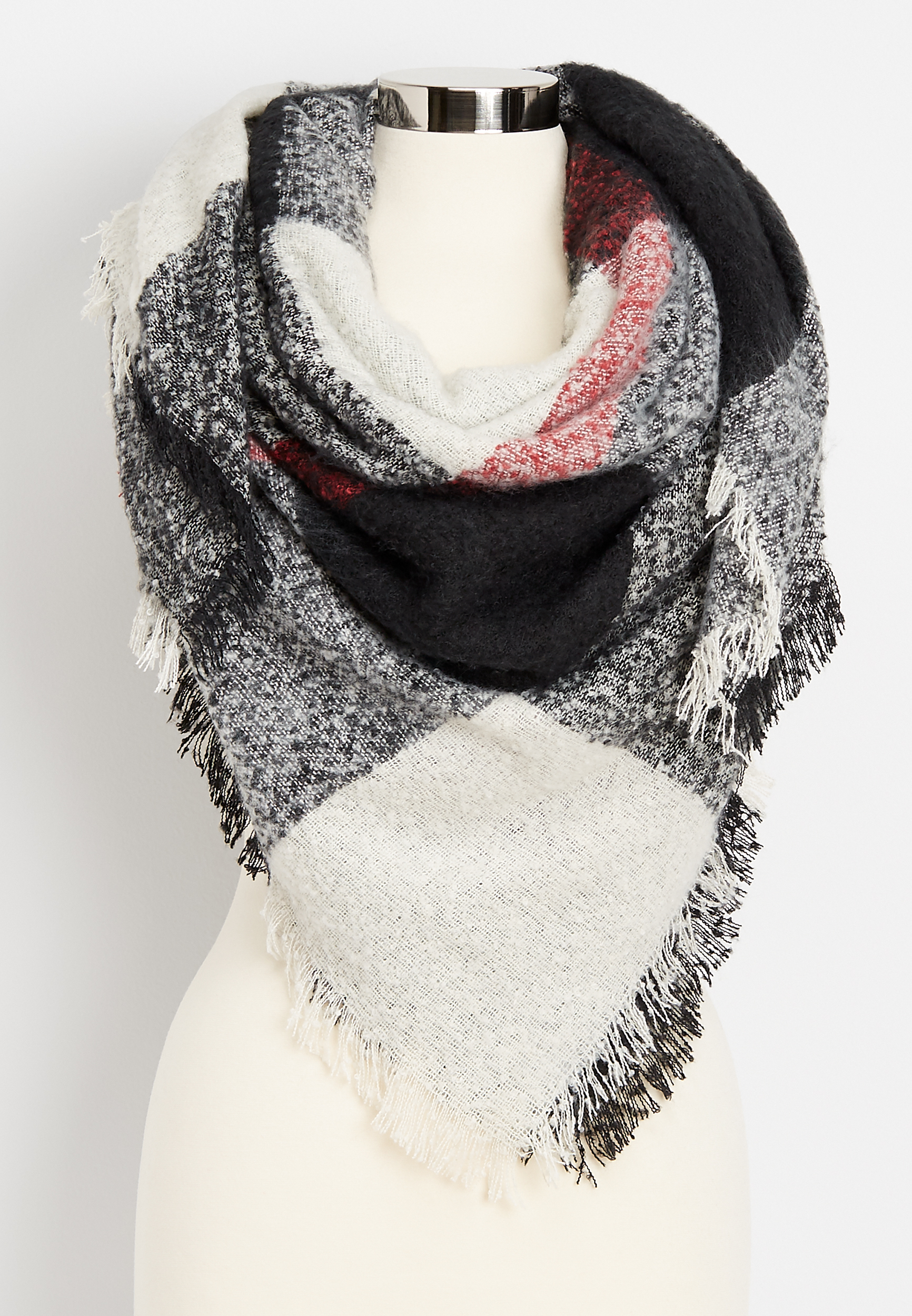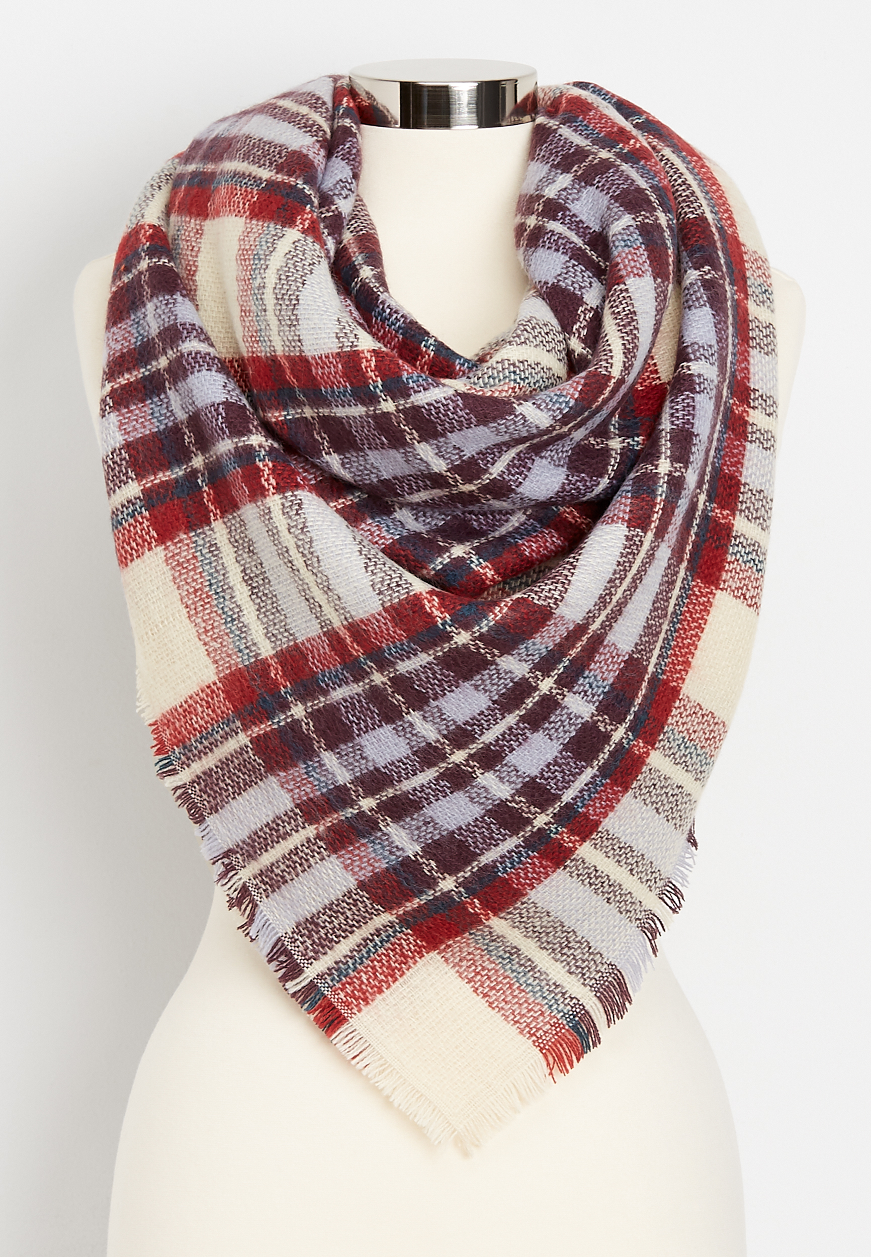 Soft and cozy knit. 52 inches x 52 inches. Wear it and share it. Buy maurices women s plaid woven blanket scarf white combo.