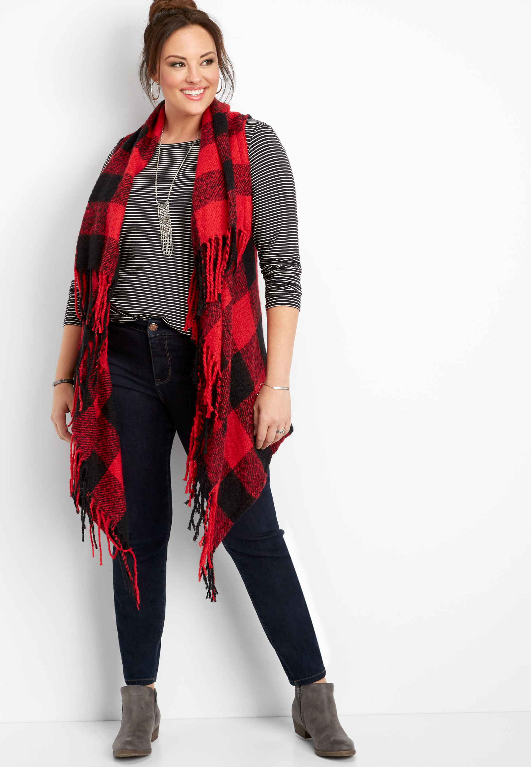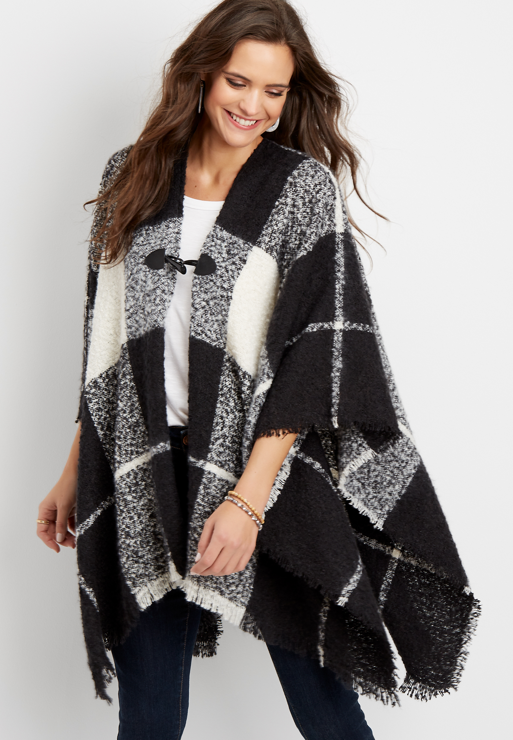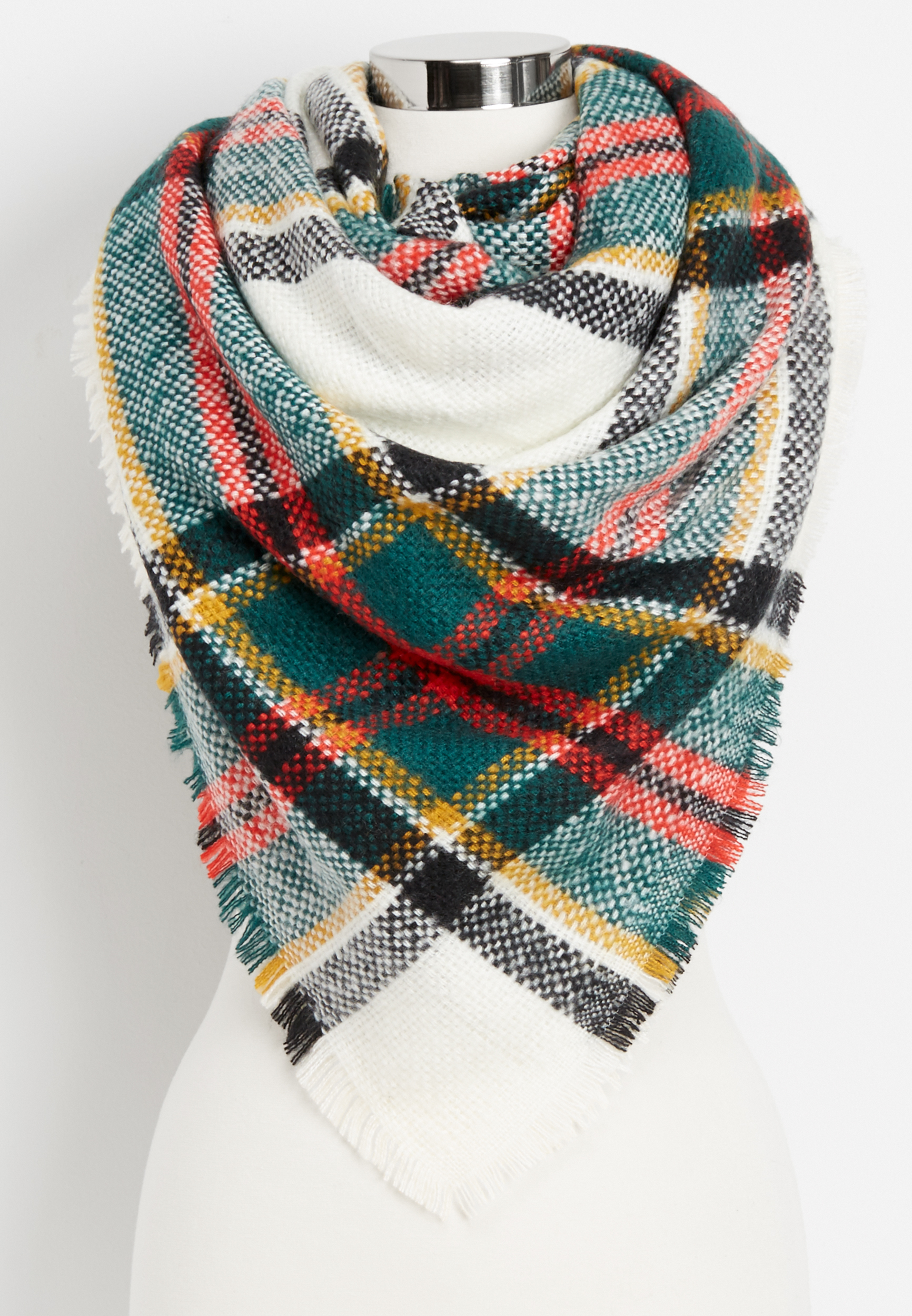 Soft and cozy knit. 52 inches x 52 inches. Wear it and share it. Buy maurices women s plaid woven blanket scarf white combo.